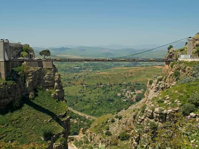 Eine tiefe Schlucht mit steil abfallenden Felskanten, ein reißender Fluss und eine atemberaubende Aussicht auf die umliegende Landschaft bieten sich dem Besucher der Pont Sidi M’Cid. Diese ist eine Kombination aus einer Schrägseil- und Hängebrücke und überspannt die Schlucht Oued Rhumel in einer Höhe von 175 m. Machen Sie sich auf den Weg dieses Bauwerk zu überqueren und spüren Sie den Wind, der durch die Schlucht weht. Verfasst von HolidayCheck