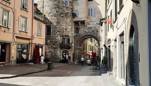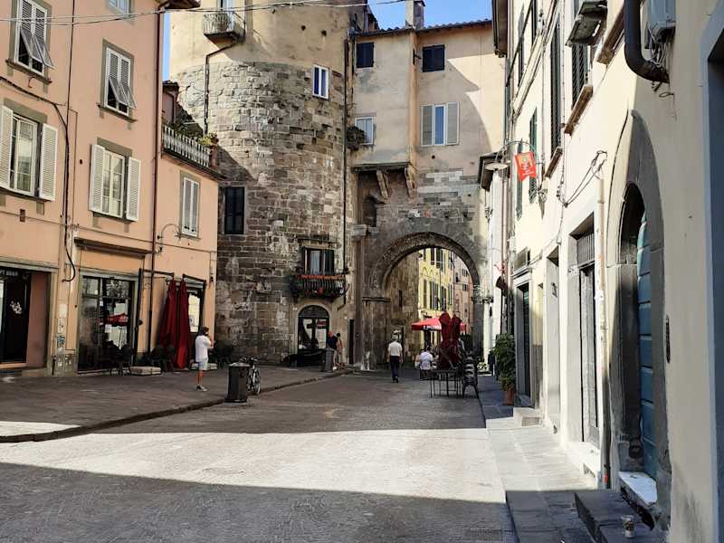 Das einstige Stadttor am nördlichen Ende der Via Fillungo besteht aus zwei Sandsteintürme mit Kalksteinverzierungen, die einen hohen Rundbogen flankieren. Das Tor wurde zwischen 1198 und 1265 erbaut und ist eines der vier ursprünglichen Tore aus dem Mauerring des dreizehnten Jahrhunderts.