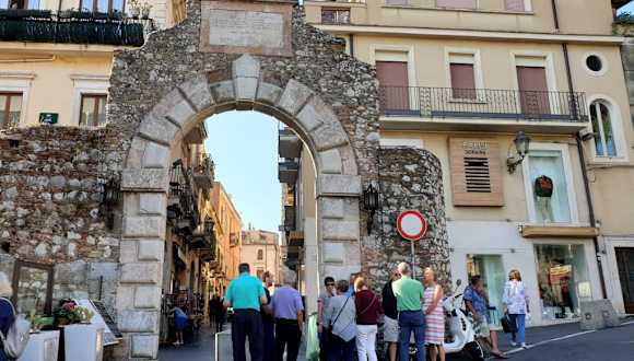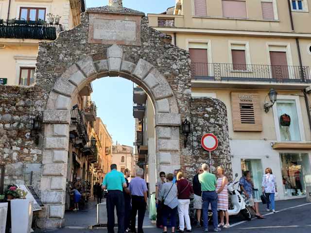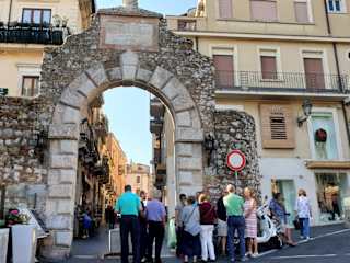 Die Porta Messina und die Porta Catania sind 2 Stadttore die erhalten geblieben sind. In der Porta Messina ist der Eingang zur Stadt, dahinter beginnt der Corso Umberto, die Hauptstraße von Taormina. Eigentlich darf hier kein Auto durchfahren, aber die Anwohner haben einen Sonderausweis, auch LKW´S dürfen z.B. zum antiken Theater fahren.