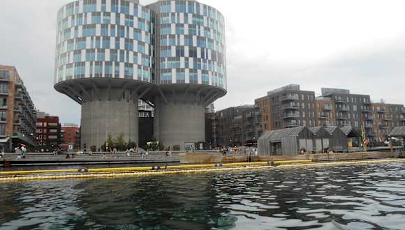 Die beeindruckenden Rundbauten am Århusgadekvarter im Stadtteil Nordhavn sind zwei ehemalige Silos für Portland-Zement, die zu Büros umgebaut wurden. Unter anderem befindet sich die Deutsche Botschaft in einem der Türme. Rund um die 1979 errichteten Silos wurden 2013/14 exklusive Büros herum gebaut. Die unterste der sieben Büroetagen befindet sich 24 Meter über dem Boden.