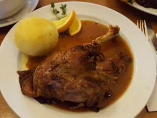 vor einem BL-Spiel um 12.30 Uhr Tisch zum Gänsekeulenessen bestellt...bei Ankunft nichts vorbereitet...hätten uns über einen eingedeckten Tisch gefreut- nicht vorgesehen...die ersten Getränke kamen in Plastikbechern- der Hinweis auf bestellten Wein führte zum aushändigen von Weingläsern- ausnahmsweise...merkwürdiges Gebaren...dann sollte man solche Reservierungen nicht annehmen- wenn ein mindestmaß an "Esskultur" nicht gewährleistet werden will...der Service immer für uns da- auch bei zunehmender Besucherzahl...das Essen- hier Brust oder Keule mit Rot/Grünkohl und einem Kloß- war für eine solche Gaststätte wirklich gelungen...alles gut abgeschmeckt und gut gegart...Nachschlag bei den Beilagen jederzeit möglich...kann man- muß man aber nicht machen- es gibt bessere Alternativen...für ein Bier und eine Bratwurst vor einem Spiel weiter die beste Option...