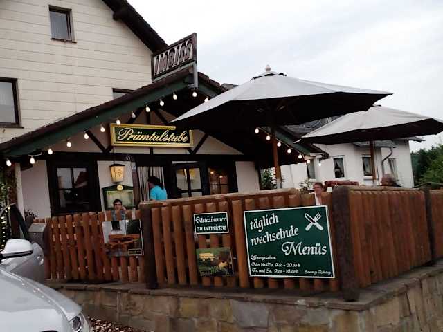 Wir waren in der JH Prüm in Urlaub als wir hunger bekamen, suchten wir das Restaurant-Imbiss Prümtalstube auf. Das Personal freundlich und hilfsbereit. Das Essen wird selbst mit frischen Zutaten zubereitet, war sehr lecker. Die Preise für Essen und Getränke, Rahmschnitzel oder Jäger mit Pommes, große Portionen, für 5,80,- Eu. sind top! Sehr gerne empfehlen wir die Prümtalstube in der St. Vither Straße (Durchgangsstraße nach Prüm) in Prüm-Niederprüm, als zwischenstopp um richtig gut und günstig zu Essen weiter!