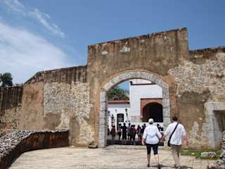 Dieses Tor verbindet das Museum de Ataranza bzw. auch die Plaza de Espana mit dem Hafen, übersetzt meint man das Tor zu den Werfthallen. Von der Plaza de Colon müßte man aber erst die Treppe herunter gehen, die heißt: Los Escalones de Alcazar. Vor der Puerta parken gerne die Autobusse, die die Touristen in die Zona Colonial bringen.