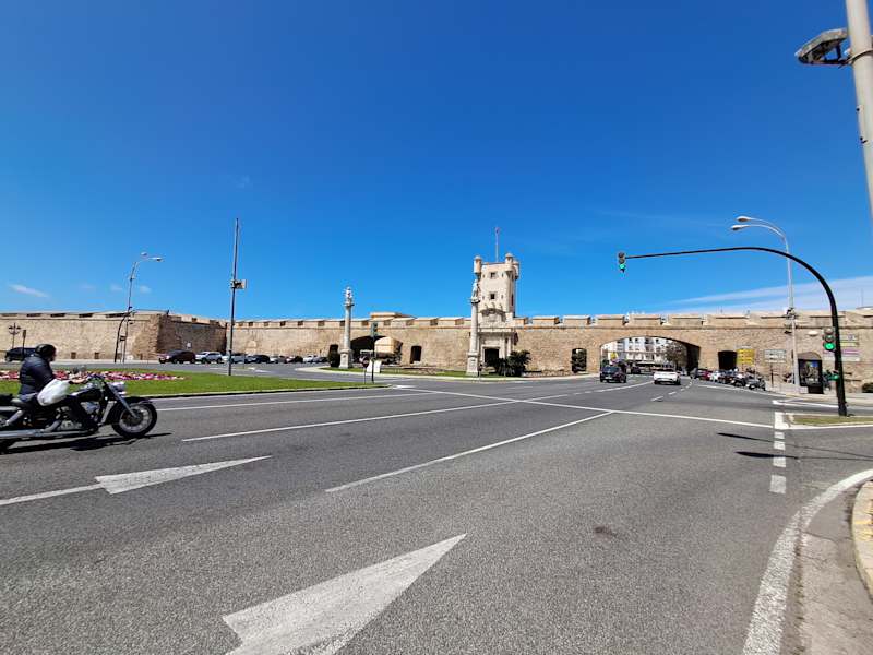 Das imposante ehemalige Stadttor ist Teil der im 16. Jahrhundert errichteten Stadtmauer und markiert heute die Trennlinie zwischen der Altstadt und dem neuen Teil von Cadiz. Das Marmorportal und der Turm wurden im 18. Jahrhundert hinzugefügt und erscheinen recht pompös für ein Gebäude, das Teil einer militärischen Festung war.
