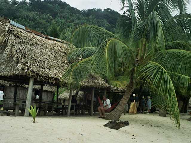 Das Beste an dem ganzen Ausflug war noch der relativ geringe Preis. Das Transportmittel war ein Blechboot mit flachem Boden und Aussenbordmotor. Ausser dem Fahrer und mir gab es noch 5 weitere Insassen. Als die Nussschale dann nicht an der Kueste entlangfuhr, sondern hinaus aufs offene Meer, wurde uns allen etwas mulmig. Jede Welle liess den Kahn einen halben Meter hochspringen und dann wieder aufs Wasser klatschen. Jeder war froh, als wir alle wieder heil zurueck waren. Nach einigen Kilometern ueber See wurde an einem kleinen und unattraktiven Strand angelegt. Danach gings fuer 20-30 Minuten in den Urwald. Das wars dann aber auch schon. Ausser maechtigem Durst wegen der Hitze hat wohl keiner etwas von diesem Ausflug mitgebracht.