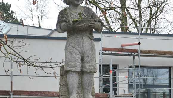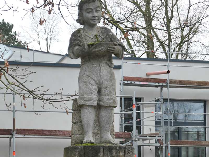 Über der 1896 / 1897 in Königshofen entdeckten „Urbani“-Heilquelle wurde 1930 ein Badehaus errichtet, welches 1960 durch eine Trinkkur- und Wandelhalle ersetzt wurde. Seit 1974 darf Königshofen den Titel Bad tragen und nennt sich nun Bad Königshofen im Grabfeld. Da diese Heilquelle 2020 saniert werden musste, wurde auch die Trinkkur- und Wandelhalle abgerissen, welche nun durch einen Neubau ersetzt wird, der nach heutigem Stand im Juli 2024 eröffnet werden soll. Vor der Trinkkur- und Wandelhalle steht ein recht netter Brunnen, auf dem sich die Figur eines Jungen in kurzer Hose befindet. Diesen Brunnen man auch jetzt von der Straße aus gut sehen.