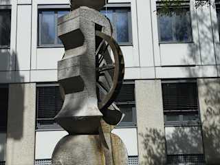 Bei meinem Spaziergang in der Gegend von der Sendlinger Straße, kam ich auch beim Radspielerbrunnen vorbei. Der Radspielerbrunnen steht in einem Knick der Hackenstraße gegenüber dem Radspielerhaus. Das Radspielerhaus ist ein denkmalgeschützter Stadtpalais. Das Palais wurde bereits 1678 erbaut. Wie man im Internet nachlesen kann, erhielt 1688 Freiherr Gaudentius von Rechberg, kurfürstlich – königlich – bayrischer Kämmerer, das Anwesen als Geschenk für getreulich geleistete Dienste. Die Familie Rechberg beherbergte in ihrem Stadtpalais im Jahre 1800 den schwer verwundeten französischen General Louis Bastoul bis zu seinem Tode. Das Palais war 1827/28 auch Wohnsitz von Heinrich Heine. Im Jahr 1848 erwarb der königlich-bayerischer Hoflieferant Josef Radspieler das Haus. Josef Radspieler stattete mit prachtvollen Möbeln aus eigenen Werkstätten auch die Schlösser vom König Ludwig II. aus. Der Garten, der Laden und das gesamte Gebäude sind seit sechs Generationen im Besitz der Familie von Seidlein. Der Radspielerbrunnen ist ein Entwurf des bekannten Bildhauers Ernst Andreas Rauch (1901-1990). Im Jahr 1962 erhielt Ernst Andreas Rauch den Förderpreis für Bildende Kunst der Landeshauptstadt München. Eine Besonderheit des Brunnens ist das wie echtes Holz wirkende Mühlrad in der Mitte der Brunnenanlage. Dieser Brunnen mit den gelungen Einfällen entstammt aus einem Wettbewerb, den die Stadt für diesen Platz und den darauf zu erstellenden Brunnen ausgeschrieben hatte. Erstmals konnte dieses Wasserspiel im Juni des Jahres 1967 der Münchner Bevölkerung vorgestellt werden. Das runde Wasserbecken ist aus Würzburger Muschelkalk geformt, in dessen Mitte ein senkrechter Körper emporsteigt. Oben auf dem Brunnen befindet sich ein fröhlicher kleiner Kopf, der seine Backen mit Wasser gefüllt hat. Dabei hat man ihm ein Zielrohr in den Mund gesteckt, und so kann die witzige Brunnengestalt oben auf der Mauer direkt mit seinem Mühlrad spielen, das zwischen ihm in der Mitte des Schaftes eingespannt ist. Ein netter kleiner Brunnen mit Schaufelrad im Stadtzentrum von München