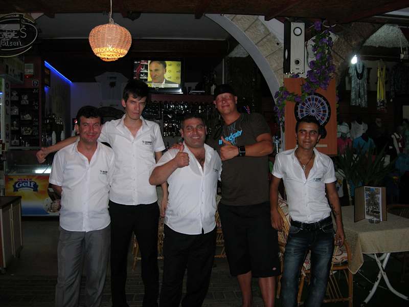 Lagebeschreibung Die Rainbow BAR liegt direkt in AVSALLAR in der Parallelstrasse zur Haupteinkaufsstrasse, also direkt an der D400 gegenüber von der Disco Sahin Tepesi bzw. dem Allaadin Özkaymak Hotel. Gut zuerkennen an der grossen Palme. allgemein Wissenswertes Etwas entfernt vom Einkaufstrubel kann man dort ein paar gemütliche Stunden bei qalifizierten, freundlichen und zuvorkommenden Service verbringen. Ausstattung bequem-gemütlich, kinderfreundlich, sauber Preise Hefeweizen 0,5l 3,-€, Efes Bier 0,5l 2,-€, alkoholfreie Getränke zwischen 1,-€ und 1,50€, alkoholfreie Cocktails 2,50€, Cocktails zwischen 3,50€ und 5,-€, Eisbecher zwischen 2,50€ und 3,50€, Speisen zwischen 3,50€ ud 7,-€ (von Pizza bis Steak alles dabei!)