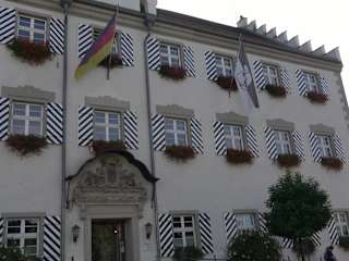 Das Rathaus von Tettnang wurde Mitte des 17. Jahrhunderts als Schloss erbaut. Über dem Portal befinden sich noch die Allianzwappen des damaligen Grafens und seiner beiden Ehefrauen. Anfang des 20. Jahrhunderts ging das Gebäude in den Besitz der Stadt über und wurde zum Rathaus umgebaut. Hier findet man auch eine "nette Toilette".