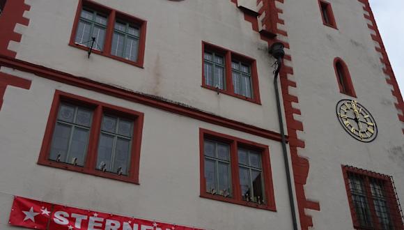 An der Stelle des heutigen Rathauses befand sich früher die Cäcilienkirche. Während der Reformation wurde die Kirche der Stadt zum Abbruch überlassen und zum Rathaus umgebaut. Dabei wurde auch das alte Friedhofsgelände abgeräumt - hier befindet sich heute der Marktplatz.