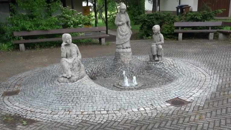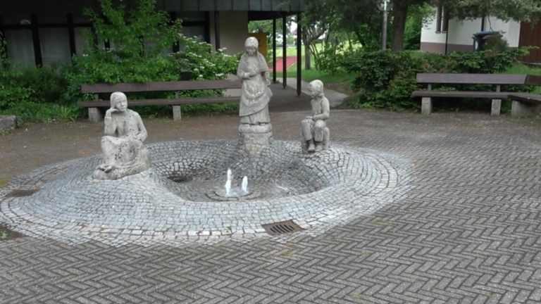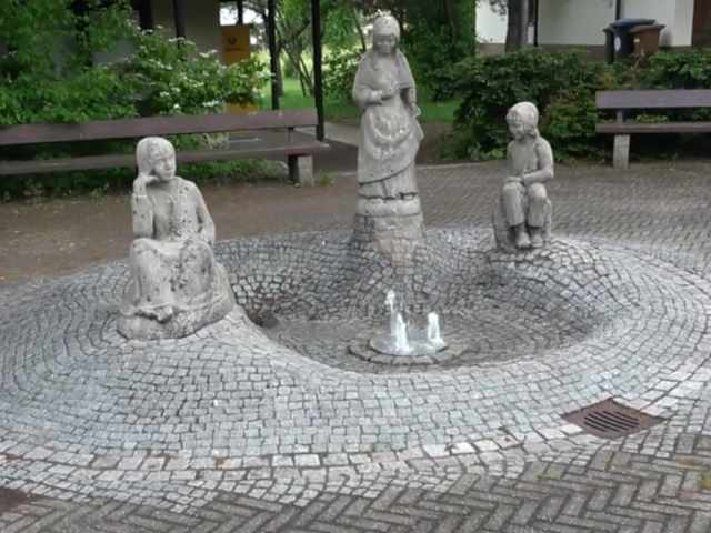 Der Rathausbrunnen steht in der Anlage vor dem Rathaus. Es ist eine gepflasterte Fläche. Der Brunnen ist etwas erhöht mit Pflastersteinen ausgelegt. In der Mitte sind drei Springbrunnen. Am Brunnen steht eine Frau, zwei Kinder sitzen jeweils links und rechts auf Steinen. Um den Brunnen sind mehrere Sitzbänke. Adresse: Erwin-Hils-Weg 4 72250 Freudenstadt stetten Geodaten: FCCX+8J Freudenstadt