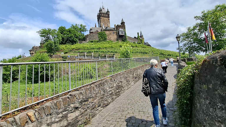 Die Burg liegt oberhalb des Weinortes Cochem. Es gibt mehrere (steile) Fußwege von der Innenstadt zur Burg. Die Wanderung dauert etwa eine halbe Stunde. Im Winter finden stündliche Führungen statt (Eintritt 6 Euro). Von der Burg aus hat man einen herrlichen Blick auf das Moseltal.