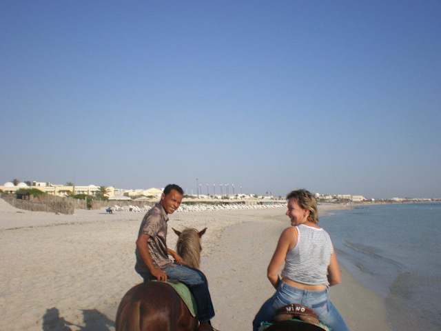 Wir waren im Hotel Odyssee in Zarzis untergebracht. Wurden dezent in der Anlage auf dem Weg zum Strand von Nasi angesprochen. Holte den üblichen was-ich-alles-biete-katalog raus. Haben dann bei ihm einen Pferdeausflug für 2h gebucht. Bezahlt wurde erst bei Abholung zum Ritt. Wurden kurz vor 7Uhr abgeholt (morgens ist es für die Pferde nicht so heiss und man darf dort in Tunesien nur bis 9 Uhr am Strand reiten). Mit einem, hmmm doch schrottreifen Wagen, wurden wir die 5min zur Station gebracht, wo wir die Pferde ausleihen konnten. Pferde waren im sehr guten Zustand. Reiteten zum Strand, dort entlang, etwas durch den Ort und dann durch die Olivenplantagen zurück. Dauer: 1:45. Waren zwar keine 2h, aber der arme Tunesier der uns begleitet musste den ganzen Weg barfuss zu Fuss mit uns gehen. Selbst im Galopp rannte er uns hinterher. Da hatte man schon Mitleid. Das schöne am Ausflug war: wie versprochen, nur wie beiden und nicht Massen an Touris wie sonst üblich. Kosten lagen bei 20 Euro pro Person. War gut investiertes Geld:) Können wir nur empfehlen.