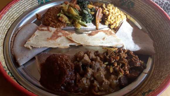 Wer typisch afrikanisch möchte, ist hier in der Schwetzinger Straße 43 in Mannheim richtig am Platz. Das Lokal ist sehr schön eingerichtet und macht einen gemütlichen Eindruck. Das Lokal hat ab 17 Uhr geöffnet und keinen Ruhetag. Die Betreiber, ein jungen Paar aus Eritrea sind sehr freundlich und zuvorkommend. Bitte bringen Sie ein wenig Zeit mit, denn die Speisen werden frisch zubereitet und das dauert seine Zeit. Nachdem in Afrika traditionell mit der rechten Hand gegessen wird, sollte man das auch mal ausprobieren, auch wenn es natürlich auch Besteck gibt. Die Speisen werden auf afrikanische Art und Weise dargereicht. Die Qualität ist prima und der preis fürs Essen angepasst. Einzigst die Weinpreise sind vollkommen überteuert - deshalb Abstriche (6,20 Euro)!