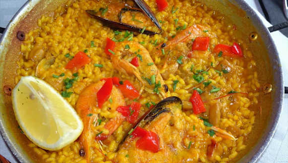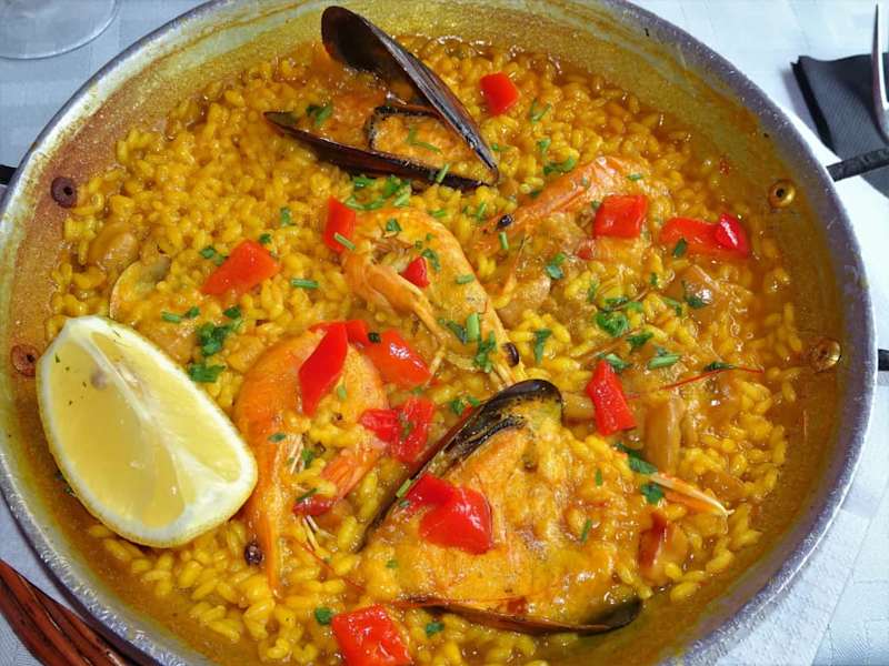 Rund um die Plaça Reial in Barcelonas Barri Gòtic drängen sich die Restaurants unter den Arkaden und diesmal fiel meine Wahl auf das „Ambos Mundos“. Neben einem ansprechenden Gastraum gibt es in der warmen Jahreszeit zahlreiche Tische im Außenbereich und eine gut organisierte Servicemannschaft kümmert sich flink und professionell um ihre Gäste. Die Speisekarte des „Ambos Mundos“ ist umfangreich und erstreckt sich von klassischen Tapas über Fischsuppe, Gazpacho, Tortillas, Salate, Fleisch- und Fischspezialitäten bis hin zu verführerischen Nachspeisen, wobei sich das Preisniveau an den umgebenden Mitbewerbern orientiert. Ich bestellte eine „Paella Especial de Marisco“ zum Preis von 14,95 € und wurde umgehend von meinem Kellner informiert, dass ich Zeit mitbringen müsse, denn das Gericht werde erst nach der Bestellung gekocht. Perfekt – so soll es bei der Paella idealerweise sein! Nach einer knappen halben Stunde landete dann ein kleines Meisterwerk mit noch etwas bissfestem Reis, Langusten, Gambas, verschiedenen Muscheln und reichlich Tintenfisch in der Pfanne vor mir – würzig abgeschmeckt, viele Zutaten unsichtbar in den unteren Etagen „vergraben“ und noch brutzelnd direkt vom Feuer. Hut ab – in Anbetracht der exponierten Lage hatte ich insgeheim eher mit überteuerter „Touri-Convenience“ aus dem Heißluftdämpfer gerechnet und wurde dementsprechend angenehm überrascht. Mit seiner eher auf Stammgäste zielenden Küche, die Handwerk und solide Zutaten zu traditionellen Gerichten vereint, auf optischen Schnickschnack am Tellerrand verzichtet und mit einem aufmerksamen Service punktet, verdient das „Ambos Mundos“ aus meiner Sicht ohne Frage Respekt.