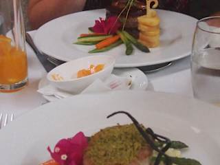 Aufgrund des Rankings in einem anderen Reiseportal sind wir auf das Restaurant aufmerksam geworden. Wir hatten einen Tisch im markant gestalteten Innenbereich. Der Service war äußerst aufmerksam, sofort nach dem Platznehmen wurde Wasser gereicht. Bei der Karte handelt es sich um eine überschaubare Auswahl von außergewöhnlich arrangierten Speisen. Es besteht die Möglichkeit sich á la Carte ein Menü (für 30 EUR) aus den angebotenen Speisen zusammenzustellen. Ein Menü besteht dabei aus einem Aperitif, Vorspeise, Hauptgang, Dessert und Kaffee. Wir hatten Glück noch einen Tisch zu erhalten, das Restaurant war sehr gut besucht und viele Tische reserviert. Dass es sich hierbei um eine gute Adresse handelt zeigt auch die Tatsache, dass hier niemand beschäftigt wird um, wie in Funchal oftmals praktiziert, vor dem Restauarant Gäste zu werben.