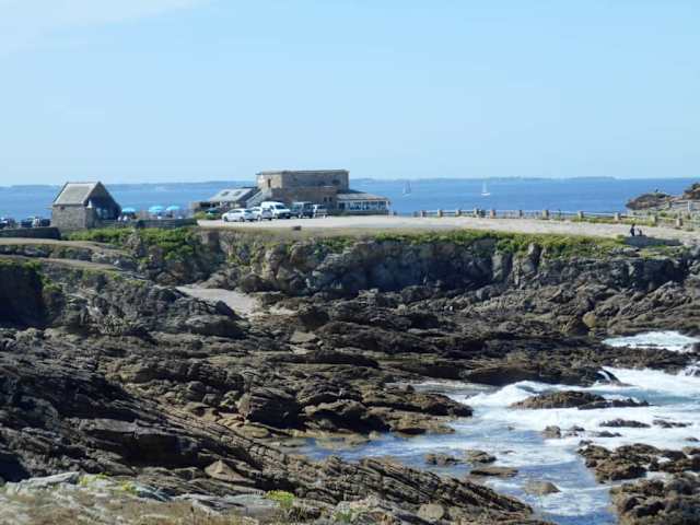 Das kleine Restaurant befindet sich an der Rue du Vivier auf dem Beg-er-Goalennec, einem Felsvorsprung, der sich an der Ostküste der Halbinsel über der Atlantikküste erhebt. Die Aussicht von hier ist phantastisch.