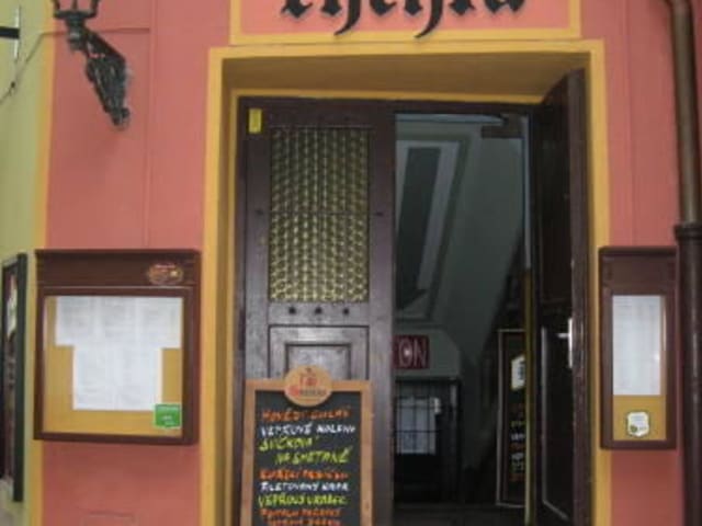 Das Restaurant zu finden war nicht leicht, aber am Ende haben wir es doch gefunden. Es stimmt : echt tschechisch und schön ruhig. Das Essen war tschechisch, nicht zu teuer und schmeckte auch gut. Dazu ein Bier und wir konnten weiter unsere Tour fortsetzen. Die Bedienung war schnell und freundlich. Es ist eine Nichtraucherstube, leicht dunkel drin und nicht zu groß. Auf der Wand hängen alte Fotos von Prag, Absolvententafel aus einer Schule,und ein paar Spotbilder. Platz war genug da. Ein paar Tische waren besetzt von gemischten Geselschaften- aber keine war zu laut. Amis, Engländer und Tschechen. Sehr nett und weit weg von Straßenlärm.