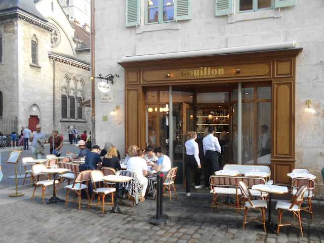 Hier findet man auf der Speisekarte einige Spezialitäten aus dem Burgund, wie z. B. Boeuf Bourguignon, Coq au vin oder jambon persillé. Wir fanden das Essen gut, das Personal freundlich und die Preise angemessen.