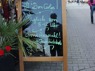 Das Don Carlos an der CentrO-Promenade bietet, wie der Name vermuten lässt, u.a. Speisen der spanischen Küche an. Die Qualität und Quantität der Gerichte ist nicht zu bemängeln. Das Ambiente spielt mit iberischen Assoziationen. Leider ist (war) der Service sehr unterdurchschnittlich: Z.B. wurde Leber von der Bedienung nicht als solche erkennt und fälschlicherweise als Lamm servierte, was zu einem großen Durcheinander führte. Das geht gar nicht!!! Die Bedienung hatte (obwohl das Restaurant eher leer war) keinen Überblick wer was bestellt hatte und musste so jedes Gericht laut über dem Tisch "ausrufen" (wer die Bestellungen nicht im Kopf hat, sollte zumindest mit Hilfsmitteln arbeiten; erwarte ich jedenfalls bei den Preisen); und dass Getränke durch mehrere Hände weitergereicht werden sollten, ist auch nicht Service der höheren Kultur, abgesehen davon, dass ein und das gleiche Getränke in gleichen Gläsern serviert werden sollte (was auch nicht der Fall war)..