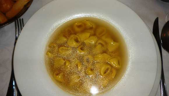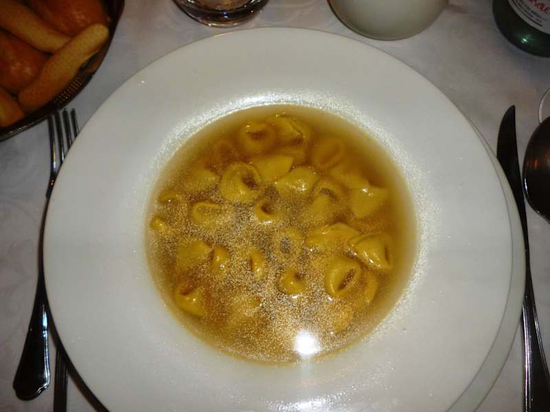 Nicht zu empfehlen! Tortellini in Brodo: die Tortellini waren nicht schlecht, aber die gibt es in vielen Geschäften in Bologna bessere zu kaufen. Die sogenannte „Brodo“ war STAR Classico (kann auch Maggi oder Knorr gewesen sein). Die arme Suppe hat leider weder Rindfleisch, noch Knochen oder Gemüse gesehen. Bitte nachlesen wie es geht : „Il Cucchiaio d'argento : Brodo di carne „. Für € 13 eine Unverschämtheit ! Cotoletto Donatello: pappige Käsesoße die nach Mehl schmeckte mit geschmacklosem Schinken (es gibt viele gute Schinkenläden in Bologna, man muss nicht, sollte aber , gleich bei Simoni einkaufen). Die Kartoffeln dazu waren frittiert und nicht gebraten und mit einer Gewürzmischung bestreut die man von den Kartoffelchiptüten kennt. Die Champignons kamen sicher aus der Dose. Die beigelegten Salatgarnituren nicht mariniert. Der Kellner war schnell und meist freundlich. Auch wenn der Anfang mit ihm unerfreulich war: die Saison für Bollito Misto war anscheinend noch nicht angebrochen, die Frage danach an ihn wurde mit einem einfachen „No“ beantwortet. Kein Hinweis wann und ob überhaupt diese auf der Web-Seite vom Donatello so hoch angepriesene Speise je wieder angeboten werden würde. Trotz der freundlichen Verabschiedung durch den Patron werden wir das Lokal sicher weder weiterempfehlen noch jemals wieder viel Geld dort hin tragen.