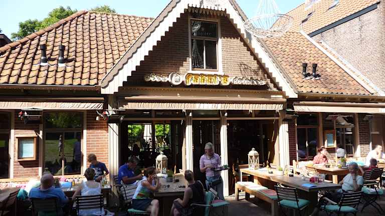 Fabel's ist mitten im Zentrum von Bergen, direkt am Platz rund um die Ruinenkirche. Man kann mit einen späten Frühstück starten, es gibt eine gute Mittagskarte mit kleinen Gerichten, Kaffee und Kuchen und eine sehr gute Abendkarte. Die Küche bietet eine Querschnitt durch die niederländische Küchen mit asiatischen Einflüssen. Am Abend ist besonders die Etagére mit verschiedenen Speisen für 2 Peronen zu empfehlen. Auch die Hausweine sind gut. Drinnen wie draußen sitzt man gemütlich zum Teil an längeren Tischen, mitunter auch mit anderen Leuten zusammen, also nichts für Menschen die nur für sich bleiben wollen. Tische kann man erst ab 6 Peronen reservieren, sonst einfach kommen und an der Bar solange warten, bis ein Platz frei wird. Das Preisniveau bewegt sich im mittleren Segment.