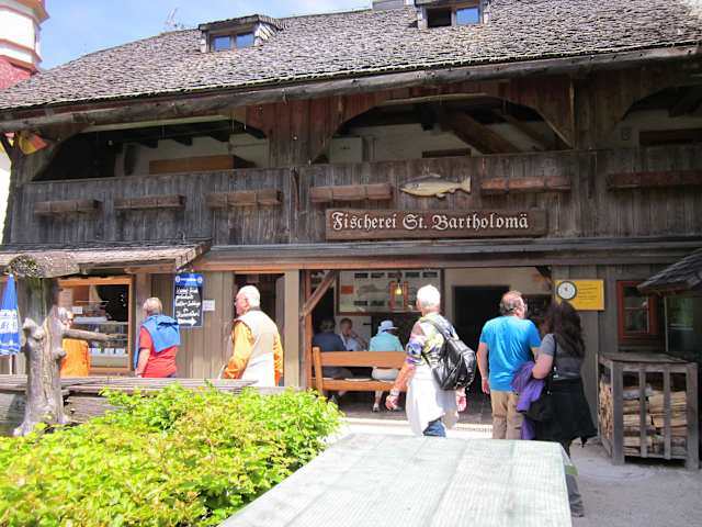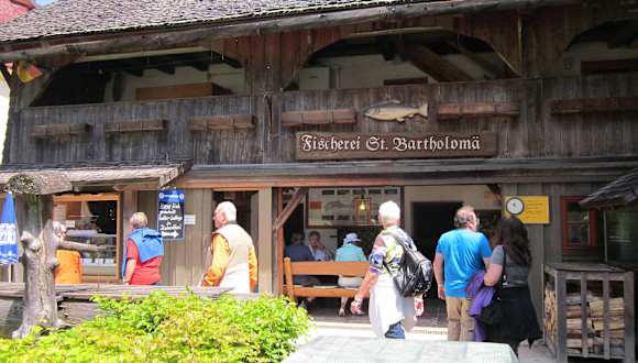 Fischer vom Königsee, um 1160 sollen Saiblinge vom Königesee von Propst Heinrich I an das Heerlager von Kaiser Barbarossa nach Italien ' verschickt' haben. Seit 150 gibt es vom Stift Berchtesgarden einen bestellten Fischmeister. In dem urigen Fischstüberl neben der Kirche kann man frischgeräucerte Forellen, Saiblinge, ab September eine seltene Spezilität - Schwarzreiter - ein Tiefseesaibling auf einem Holzbrett mit Brot speisen aber auch verpackt mitnehmen nach Größe 4-6 €. Fischerfahrten sind möglich. www.fischervomkoenigsee.de Einrichtung, einfach, urig rustikal, dafür besten Fisch, hm... !