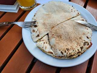 Die Fladerei am Salzgries bietet eine große Auswahl an pikanten und süßen Fladen. Das eigens gebraute Fladerei-Bier vom Fass ist gut und passt gut zum Essen. Bei schönem Wetter ist der Schanigarten eine angenehme Option zum Draußensitzen.