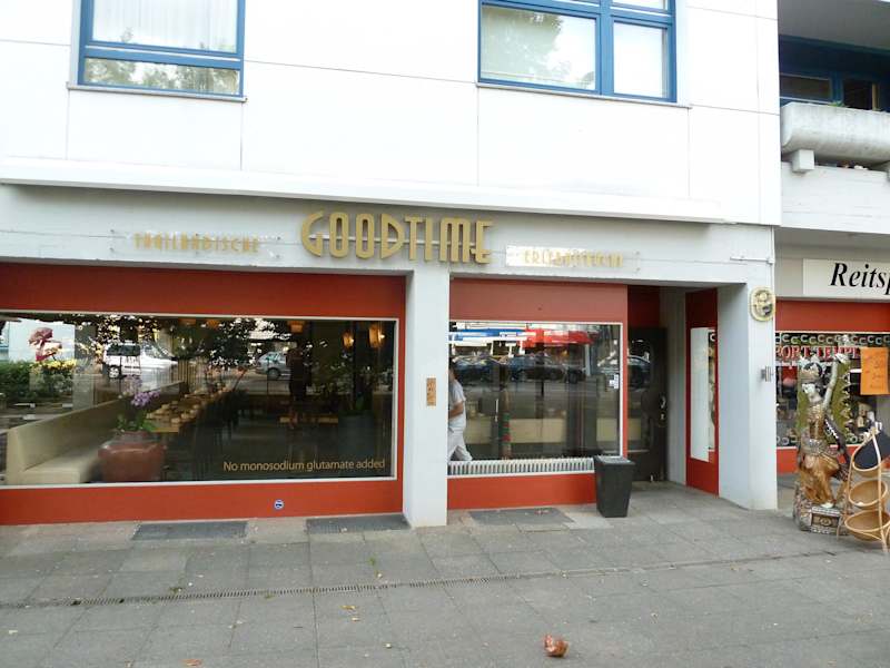 Das Restaurant "Goodtime" gibt es in Berlin drei Mal, in Berlin Mitte am Hausvoteiplatz, in Berlin-Mitte an der Chauseestraße und in Berlin Zehlendorf. Die Restaurants unterscheiden sich im Ambiente und der Karte. Ich besuchte das GOODTIME am Hausvogteiplatz in Berlin Mitte. Es besticht durch einen großen Restaurantraum in einem Neubau. Zudem kann hier der Innenhof im Sommer mit genutzt werden. Die Tische sind mit massivem Besteck eingedeckt, serviert wird in grünem Keramik-Geschirr. Im Untertitel heißt es "Indonesische & Thailändische Erlebnisküche". Gekocht wird eine gute thailändische Küche mit entsprechender Schärfe mit Preisen zwischen 11€ und 17€ für die Standardgerichte. Aufgrund des großzügigen Gastraums kann man hier auch zu einem Geschäftsessen einladen. Ich aß Chiboust (8€) und als Desserts einen wirklich leckeren Kuchen für 5,00€. Die Desserts werden in einer Vitrine präsentiert und sind sehr zu empfehlen. Der schwarze Tee kostete 2,50€. Wir kommen gerne wieder und können das Restaurant empfehlen.
