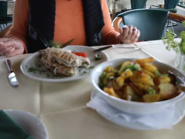 Nach einem anspruchsvollen Gang über die Golfanlage besuchten wir das Restaurant mit Sonnenterrasse und Blick auf die Golfanlage von Gut Waldshagen im Ortsteil Bösdorf südöstlich von Plön. Wir wurden von der netten Dame im Service freundlich begrüßt und sie reichte uns zur Mittagszeit die Speisekarten. Heimische Gerichte aus regionaler und mediterraner Küche laden dazu ein, das Restaurant nicht nur nach dem Golfspiel aufzusuchen. Unsere Bestellung lautete dann Roastbeef „rosa“ mit Bratkartoffeln, Remouladensauce und Salatbeilage für 12,50 EUR und drei selbst eingelegte saure Bratheringe ebenfalls mit Bratkartoffeln zum Preis von 8,50 EUR. Die Gerichte waren von ausgezeichneter Qualität, schmeckten hervorragend und waren preismäßig unschlagbar. Hier kann man wirklich von einem Preis-Leistungs-Verhältnis sprechen, das unschlagbar ist. Inklusive Getränke haben wir etwas über 25,00 EUR bezahlt. Zusätzlich zur Speisekarte bietet das Restaurant Gut Waldshagen regelmäßig verschiedene Spezialitätenwochen an. Dieses Restaurant bietet sich auch für Nichtgolfer zur Einkehr ein. Wir können es jedenfalls bedenkenlos weiter empfehlen.