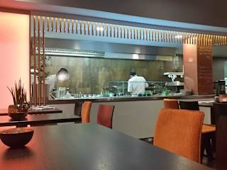 Im Hundertwasserhaus "Grüne Zitadelle", mitten im Stadtzentrum am Breiten Weg befindet sich ein modernes asiatisches Restaurant. Das "Hyaku Mizu" ist keines der kitschig-asiatischen Restaurants mit roten Laternen und Löwenfiguren vor der Tür. Ganz im Gegenteil, das Ambiente ist modern und stylisch, dabei nicht aufdringlich. Die Wände sind mit anthraziter Wandfarbe gestrichen, einen Kontrast bilden gelbe und orange Sitzmöbel und orange Deckenleuchten. Der absolute Hingucker ist die offene Küche mit einem besonderen Grill (japanischer Robata Grill). Das Restaurant punktet aber nicht nur mit seiner Einrichtung - auch die Küche überzeugt absolut. Die Gerichte sind ein bunter Mix der asiatischen Küche, auf den deutschen Gaumen und die deutschen Eßgewohnheiten angepasst. Alles sehr ansprechend angerichtet und sehr lecker. Der Name des Restaurants, Hyaku Mizu, soll angeblich Hundert Wasser bedeuten, angelehnt an die Lage im Hundertwasserhaus. Wie auch immer, ich halte das Hyaku Mizu für eines der besten asiatischen Restaurants, die ich bisher besucht habe. Einen einzigen Kritikpunkt musste ich feststellen: es gibt eine (sehr schöne) Außenterrasse. Um dort bedienen zu können, gehen die Servicekräfte immer durch den Gastraum und die Eingangstür, die zu diesem Zweck mit einem Keil festgestellt war. Leider wurde es im Laufe des Abends dadurch an unserem Tisch unangenehm kalt und es zog auch. Daher ein Punkt Abzug in der Kategorie Einrichtung. Die Preise sind angemessen, Hauptgerichte gibt es so um die 15 bis 20 Euro.