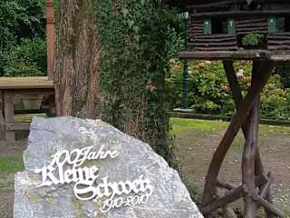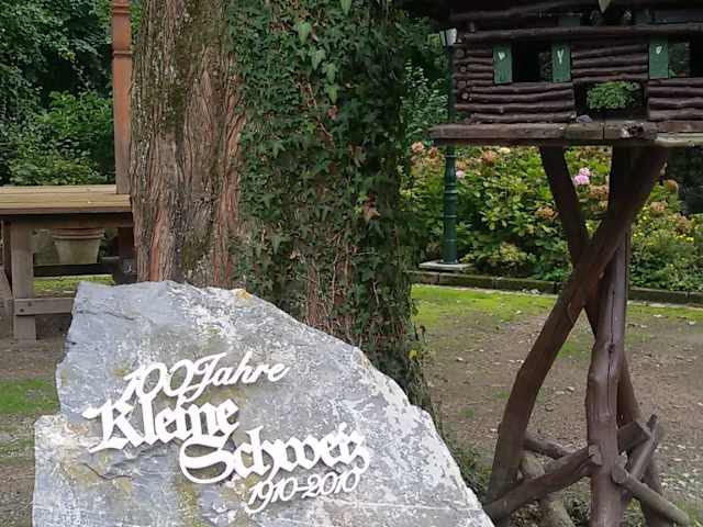Wir wanderten den Rundwanderweg "Um den Eignerbach" und nutzten den Parkplatz der kleinen Schweiz. Es sah so einladend aus, dass wir uns schon auf das Ende des Weges freuten um dort einzukehren. Es zog sich komplett ein roter Faden durch das Konzept "Kleine Schweiz". Die Deko im Außen und Eingangsbereich war sehr ansprechend. Die Räume hell und freundlich und die Mitarbeiter durchweg sehr nett und freundlich. Wir wurden über zusätzliche Menüs informiert und bekamen die umfangreiche Karte. Die Getränke kamen schnell und immer wurde man freundlich angesprochen. Wir haben uns sofort wohl gefühlt. Wir entschieden uns für Salat mit gebraten Pilzen sowie Salat mit Garnelen. Diese kamen an einem Schwert drapiert auf einem sehr ansprechenden Teller "mit Galgen". Das Essen war sehr lecker, wir waren sich nicht zum letzten Mal dort und werden bei der nächsten Runde den Aschluß des Tages sicher wieder in der kleinen Schweiz finden. Es war wie ein kleiner Urlaub.
