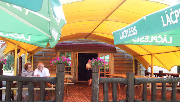 Ein schönes Restaurant in einer Blockhütte direkt an der Gauja gelegen. Es ist teil einer Ferienanlage mit Minigolfplatz und 2 Gästehäusern. Besonders die schöne Außenterasse wusst zu punkten. Der Service war nett und freundlich. Das Essen war auch lecker. Knoblauchbrot und ein Salat haben geschmeckt. Auch die anderen Gerichte am Tisch waren zur vollsten Zufriedenheit. Geheimtipp wenn man sich mal ein bissle außerhalb der Haupstadt Riga aufhällt, insbesondere auch durch wunderbare nicht überlaufene Strände in der Nähe.