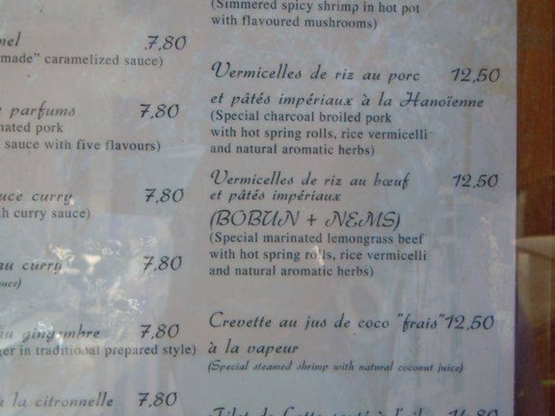 Aufgrund der positiven Kritiken im Internet sind wir an unserem letzten Abend ins "Le Dan Bau" gegangen - und hatten Glück, noch einen Tisch zu erwischen. Sowohl die Vorspeisen als auch die Hauptspeisen waren sehr schmackhaft und die Preise für Pariser Verhältnisse absolut angemessen (die meisten Hauptgerichte lagen unter 15 €). Auch der Preis für offenen Wein war absolut okay (1 l ca. 14 €). Ach, und die Nachspeise war ebenfalls sehr gut! ;-) Das köstliche vietnamesische Essen sowie die angenehme Atmosphäre im Restaurant trugen dazu bei, dass wir gerne am nächsten Tag vor unserer Abreise dort zu Mittag gegessen hätten, doch leider ist das Restaurant mittags geschlossen... Bei unserem nächsten Paris-Besuch ist klar, wo wir mindestens einmal essen werden! Und auf jeden Fall werden wir vorher reservieren.