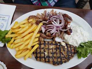 Sehr leckeres Essen, große Portionen. Wir haben mit zwei Personen insgesamt sieben(!) Ouzo auf´s Haus erhalten. Vielleicht war es die Freude über die Wiedereröffnung nach dem lockdown - auf jeden Fall sehr nett. Die Bedienung war leider dennoch etwas unterkühlt - eher ungewöhnlich für ein griechisches Restaurant. Wir haben draußen gesessen. Die "Aussicht" und Umgebung sind nicht schön - viel Beton und Hinterhof. Leider gibt es von der Gaststätte keine Homepage.