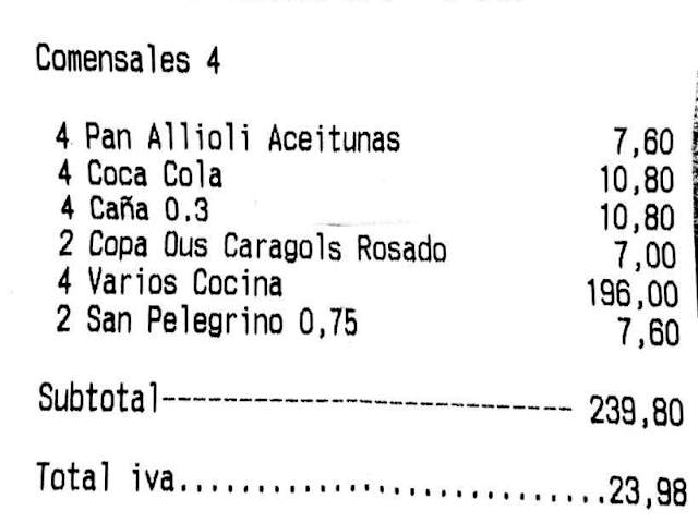 Ein etwas anderes Restaurant. Im Kantinencharme gibt es hier zur Mittagszeit für wirklich günstige Preise ein augezeichnetes Menü mit reichhaltigem und sehr guten Nachtischbuffet. Für aktuell nicht ganz 7,- sind 3 Gänge plus Wasser und Wein (jeweils eine Flasche für 2 Personen) abgedeckt. Die Paella ist geschmacklich ein Gedicht, aber sehr rustikal mit Knochen und Schalen. Die einzige Entäuschung in all den Jahren war bisher ein Hamburger mit Pommes. Ist wohl besser dort bei einheimischen Eintöpfen zu bleiben. Das Highlight ist aber das Nachtischbüffet, das jede Diät torpediert. Frisches Obst, leckere Kuchen sowie Flan oder Creme Catalan. Unmöglich sich an einem Besuch durch alles durchzuessen. Im Gegensatz zu früheren Besuchen war das Menü dieses Mal nur Spanisch, ein Lexikon/Reiseführer mit den grundlegenden Gerichten hilft hier weiter.