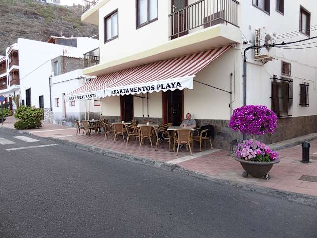 Sehr gut Essen kann man in diesem kleinen Hafenlokal, dass ebenfalls Apartements vermietet. Wir waren dort fast täglich zu Gast und haben immer mit einer Fischsuppe für 3 € gestartet. Alleine hiervon wurde man fast schon satt. Die anderen Gerichte der recht übersichtlichen Speisekarte wie z. B. Kaninchen in Kräutersoße, Thunfisch in Mandeln oder Kräuterknoblauch mit der gomerischen Spezialität "Runzelkartoffel" (die einzigen die wir auf La Gomera gegessen haben, die wirklich eine richtige Salzkruste hatten !! und nicht nur wie normale Kartoffeln mit Schale aussahen) sowie der Gomerische Eintopf, bestehend aus Kirchererbsen, Kartoffeln und Fleisch, schmeckten alle ausgezeichnet und waren mit ca. 8 € immer ihren Preis mehr als wert. Als Dessert bietet sich ein Stück des hausgemachten Kuchens an, der allerdings mit 3,80 € recht teuer, aber auch sehr lecker ist. Oder einfach einen Barraquito für 1,40 € als Nachtisch genießen. 0,5 l Rotwein des Hauses kosten 5,80 €. Ruhetag in der Regel montags. Noch ein Tipp für fast alle Lokale vor Ort: man bekommt fast immer unaufgefordert etwas Brot und 2 Dipps (Mojo Rojo o. ä.) vor dem Essen serviert, die mit ca. 1 - 1,5 € pro Person berechnet werden. Wer dieses nicht möchte, am besten gleich bei der Bestellung ausdrücklich abbestellen.