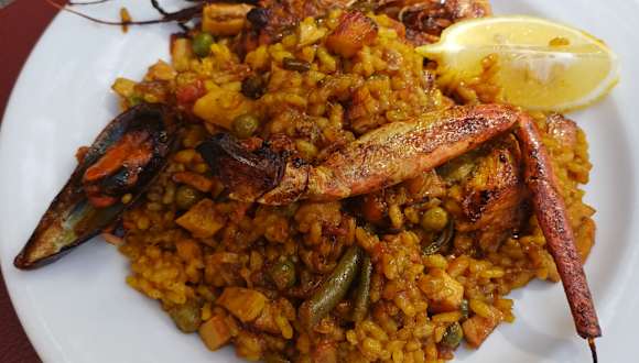 Wir hatten eine Paella mit Gambas. Super super lecker. Man bekommt die Paella aus einer Pfanne am Tisch serviert. Am Abend waren außen alle Plätze belegt. In den umliegenden Restaurants war kaum etwas los - dies spricht wohl auch für die Qualität des Restaurants.