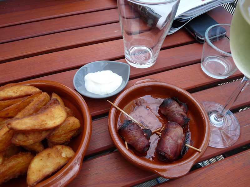 Der "Schwedenfrieden" war bereits ein alteingesessenes Ausflugslokal vor den Toren von Bielefeld, stand dann aber lange leer. Nun wurde das Lokal komplett renoviert, mit neuem Konzept wiedereröffnet und es wurden sogar einige Hotelzimmer eingerichtet. Es liegt im grünen Umfeld von Bielefeld, in der Nähe des Ortsteils Kirchdornberg. Man fährt erst eine Weile im Zickzack über Feldwege und ereicht dann das Lokal, das am Hang mit Fernsicht gelegen ist, unterhalb des Höhenzuges des Teutoburger Waldes und ganz in der Nähe des bekannten Fernwanderweges "Hermannsweg". Für Nicht-Einheimische nicht so einfach zu finden, daher hier die Adresse für das Navi: Zur Schwedenschanze 75, 33619 Bielefeld. Die Einrichtung ist nun modern, ganz oben liegen die Hotelzimmer, darunter das Restaurant mit Gastterrassen auf zwei Ebenen. Daneben gibt es einen baumbestandenen Biergarten mit schönen Holzstühlen. Man sollte allerdings wissen, dass das Lokal wegen seiner Waldrandlage nachmittags im Schatten liegt: Draußensitzen eignet sich also mehr für heiße Sommertage als für kühle Frühlingstage, an denen man über jeden Sonnenstrahl dankbar ist. Küche: Tagsüber Ausflugslokalküche, da viele Wanderer vorbeikommen mit deftigen Platten etc. Nachmittags Kaffee und Kuchen. Abends gibt es als Besonderheit "nur" Tapas, warme und kalte. Der Blick führt hinab über Felder und Wiesen, die Lage ist vollkommen ruhig.
