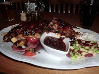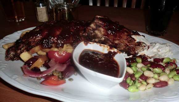 Im Zentrum des Städtchens Landskrona in der südschwedischen Provinz Skåne län fanden wir direkt gegenüber vom Rathaus von Landskrona das Restaurant und Pub „Speaker‘s Corner“. Vor dem Lokal kann man auf einer Terrasse sitzen, aber bei hochsommerlichen Temperaturen zogen wir es vor, die kühlen Räume im Inneren aufzusuchen. Von der authentischen Ausstattung des Restaurants im gemütlichen englischen Landhausstil waren wir angenehm überrascht und fühlten uns gleich wohl. Wir wurden von dem Ober freundlich begrüßt und konnten uns auf Englisch bestens verständigen. An Getränken brachte er uns ein großes Carlsberg Bier (53,00 SEK (5,80 EUR)) und eine „Cola Light“ für 25,00 SEK (2,75 EUR). Inzwischen studierten wir die englische Speisenkarte und wurden bei „Texas Wet Ribs“ (Rippchen) mit Bohnen und Krautsalat und Pommes frites für 185,00 SEK (ca. 20,00 EUR) fündig. Diese schmeckten uns ausgezeichnet, das Fleisch löste sich problemlos von den Knochen und die Beilagen waren ebenfalls nach unserem Geschmack. Das flinke und sachkundige Personal und das gute Essen in einem ausgezeichneten Ambiente veranlassen uns, dieses Restaurant in Landskrona besonders zu empfehlen.