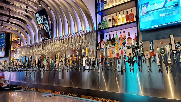Das Yard House in Manhattan bietet über 100 gezapfte Biere und gepflegte amerikanische Küche. Es liegt fast am Times Square, also sehr zentral. Das Preis-Leistungs-Verhältnis ist für New Yorker Verhältnisse gut. Dadurch war der Andrang für einen Tisch auch im Februar sehr groß, eine Reservierung empfahl sich. Wir waren so begeistert von Bier, Essen (u.a. Burger, Chicken Wings), Bedienung und Lage, dass wir während unseres 8-tägigen Urlaubs mehrmals dort waren.