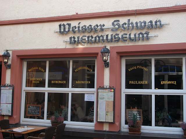 Der Weisse Schwan in der Heidelberger Altstadt ist Kneipe und Biermuseum in einem. Zur Auswahl stehen über 100 Biere aus 26 Ländern sowie noch einmal 10 Biere vom Fass. Zugleich ist der Weisse Schwan aber auch noch ein Speiselokal, das mitten in der Altstadt liegt , und gerne von Touristen besucht wird. Das Angebot ist recht gut zu fairen Preissen. Restaurant Weisser Schwan Biermuseum Hauptstr.1 69117 Heidelberg