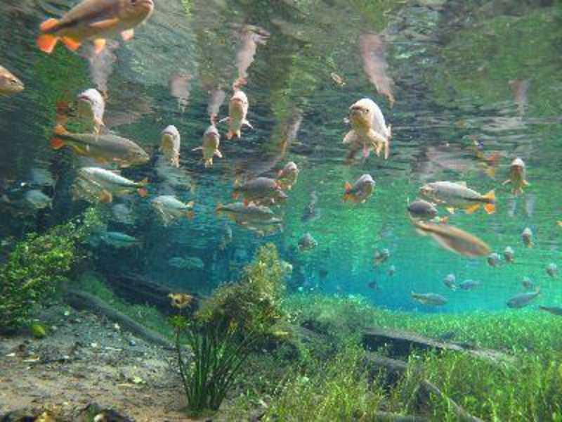 Also, als ich die ersten Bilder im Internet sah, hab ich sie nicht geglaubt: Mit Fischen in glasklarem Wasser wie in einem Aquarium schnorcheln. Aber genau dies können Sie im Aquario Natural... und zwar nicht nur in einem Becken, sondern im Quelltopf des Rio Sucuri und auf weiteren 800 Flußmetern, schön eingepackt im Neoprenanzug und mit einer Schwimmweste versehen. Einziger Wermuthtropfen: bei mir war die Führung nur in portugiesisch... sonst wars echt gut, auch wenn ich kein Freund von Tauchen/Schnorcheln bin! Vor dem Start gibts eine Einweisung im Swimmingpool, und auf dem Weg zum Fluss bzw. zurück sehen Sie noch viele anderen schönen Eindrücke aus dem brasilianischen Outback!