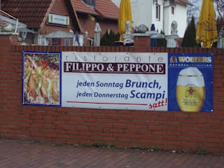 Filippo und Peppone ist ein italienisches Restaurant etwas außerhalb von Hannover. Das Restaurant ist modern eingerichtet und die Servicekräfte sind sehr freundlich. Die Speisekarte bietet das was man von einem italienischen Lokal erwartet. Die Beleuchtung im inneren sorgte für eine entspannte Atmosphäre.