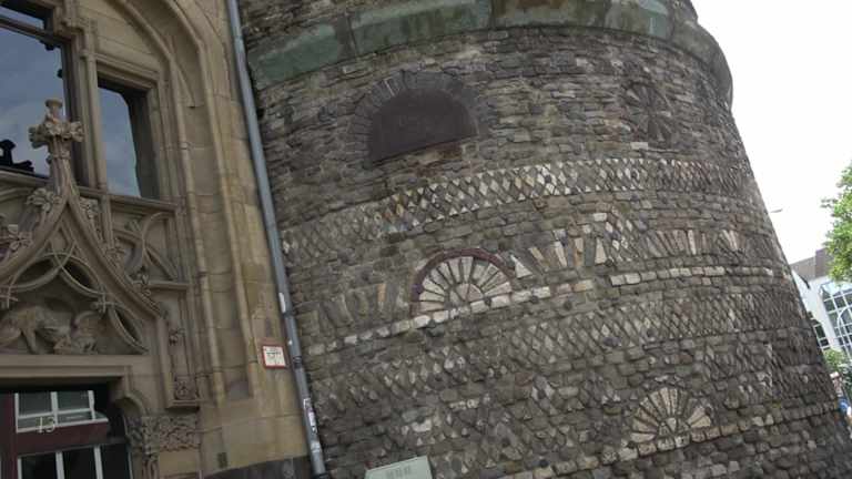 Der Römerturm ist der einzig erhaltene Turm der römischen Stadtmauer. 19 Türme waren es insgesamt. Er befindet sich in der Zeughausstraße. Er ist eines der wichtigsten Zeugnisse der römischen Geschichte der Stadt. Adresse: Zeughausstraße 13, 50667 Köln Geodaten: WWRW+9J Köln