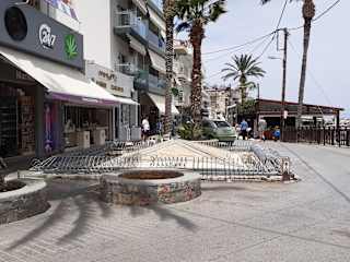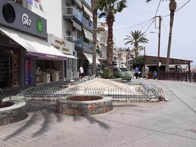 An der Agias Paraskevis / Ecke Sanoudaki findet man einen pyramidenförmigen Brunnen mit Mosaiken, die Angelszenen darstellen. Es wird vermutet, dass der Brunnen aus römischer Zeit stammt. Leider sind die Mosaiken stark beschädigt. An dieser Stelle führt die Straße direkt am Wasser entlang, wo es Reste eines versunkenen antiken Hafens gibt.