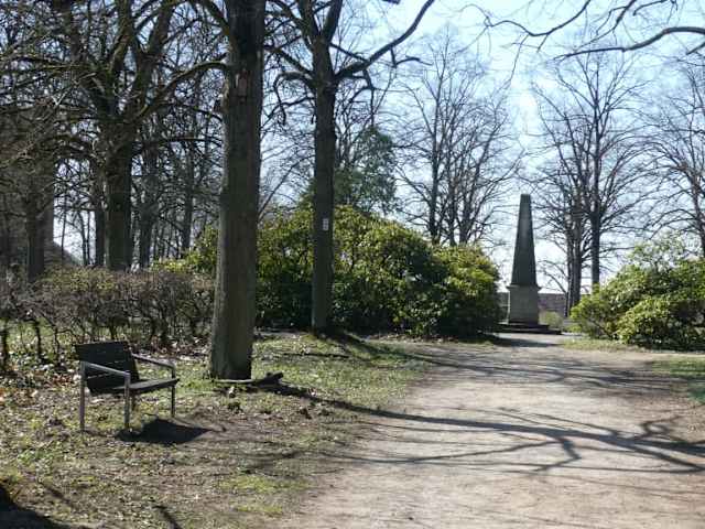Vom Treppenaufgang, dem Eingang zum Schlosspark, sind es nur ca. 50 Meter zu einem steinernen Tisch und bis zum Rondell mit dem Obelisken und mit den 4 kleinen, schönen Steinputti, die für die 4 Jahreszeiten stehen. Der Obelisk im Rondell ist sowohl vom Treppenaufgang zum Schlosspark im Westen, als auch vom Mausoleum im Osten der Parkanlage gut sichtbar und man kann das Rondell mit diesem „Wegweiser“ eigentlich nicht verfehlen. Nach meiner Meinung sollte man bei einem Besuch des Schwanbergs unbedingt auch einen Spaziergang durch den Schlosspark machen und dabei einen Stopp beim Rondell einlegen.