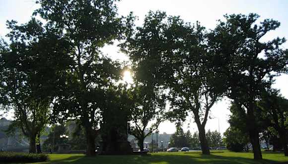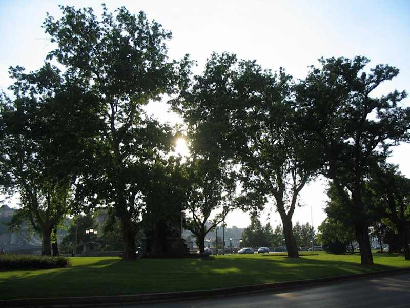 Direkt vor der Bücke, hier steht das noble vier Jahreszeiten Hotel , viel,Verkehr und Skulpturen, nicht zum Erholen und Verweilen geeignet