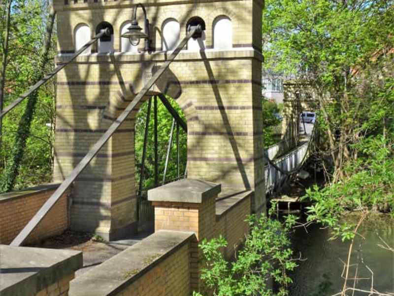 Die „Rosentalbrücke“ ist nicht nur die einzige Hängebrücke Braunschweigs, sondern auch ein überaus charmanter architektonischer Ausflug in die Gründerzeit. Im Mittelalter bildeten die Arme der Oker und ihre Wallanlagen einen wirkungsvollen Verteidigungsring rund um die Kernstadt, aber veränderte Waffentechnik machte gegen Ende des 18. Jahrhunderts diesen Schutz wirkungslos. Wie auch in vielen anderen Städten wurden daraufhin die Befestigungen geschleift und nicht selten als Parks umgestaltet. Gegenüber des Inselwalls entstanden nun neue Wohngebiete, die allerdings nur sehr mühsam über entferntere Brücken Zugang zur Altstadt erlangten. Eine Bürgerinitiative plante und finanzierte daraufhin die noch heute erhaltene Rosentalbrücke, die inzwischen unter Denkmalschutz steht und mit ihrer Breite von gerade 1,60 Meter nur von Fußgängern genutzt werden kann. Zwischen den historischen Pylonen aus gelbem Ziegelstein und ihren Eisenbändern führt die Brücke auf einer Länge von 36 Metern über die Oker und lohnt einen Abstecher, den man übrigens bestens mit dem Besuch des nahen Inselwallparks, Schloss Löbbecke und dem Gauß-Denkmal verbinden kann.
