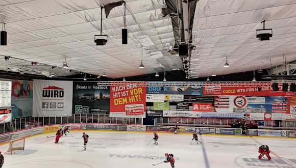 Die Rostocker Eishalle ist die größte in Mecklenburg-Vorpommern und ist Heimspielort der Rostocker Piranhas. In der Winterzeit ist sie auch der Öffentlichkeit zugänglich.